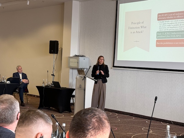 The training was organized by the International Bar Association, and the expert team, in addition to Professor Sterio, consisted of professors and practitioners from the United Kingdom, Brazil, Chile, and the United States. Professor Sterio delivered two presentations about the sources of International Humanitarian Law and the fundamental principles of International Humanitarian Law. In addition, she also led several discussion groups and simulated exercises, where she guided Ukrainian colleagues across various evidentiary challenges as they relate to complex war crimes trials. This was Professor Sterio’s second trip to Poland as an expert; she had previously participated in a similar training in September 2024.