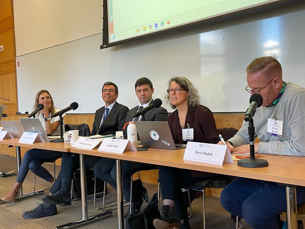 Professor Heidi Gorovitz Robertson spoke on The Public Voice In Ohio Administrative Law, at the Ohio Environmental Council’s Conference on Environmental Law, held at The Ohio State University’s Moritz College of Law in Columbus on September 26, 2025. Her presentation described the research behind her recent testimony before the Ohio Power Siting Board regarding the appropriate agency evaluation of public comments. CSU College of Law Environmental Law Fellow Mark Bank presented on the same panel regarding his work on the data behind Professor Robertson’s testimony.