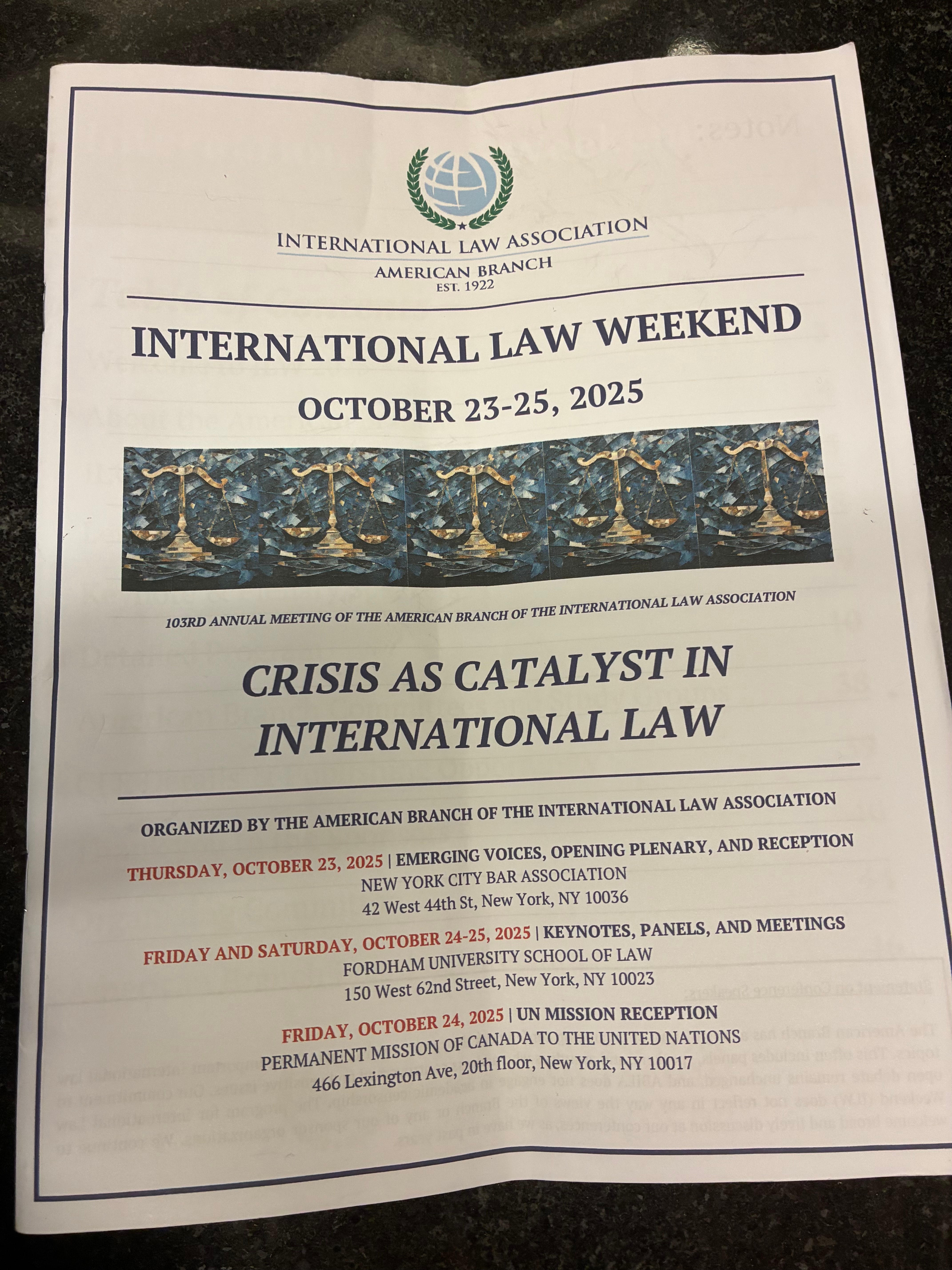 Professor Milena Sterio participated in the International Law Weekend conference in New York City from October 23-25. International Law Weekend is a premier international law conference organized and hosted by the American Branch of the International Law Association (ABILA). Professor Sterio serves on the ABILA Board of Directors; Co-Chairs the Gender Justice and the Teaching International Law Committees; serves as Co-Director of Studies; and also served on the ILW Organizing Committee this past year.